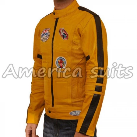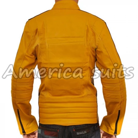 The new product is introduced by America suits which have been worn in the movie “Kill Bill”, this fashionable yellow jacket which was worn by “Uma Thurman” this jacket has got supreme class and elegance by its durable leather which other jacket lacks, whenever you will wear this jacket you will feel like you are being watched because of the quality of the jacket grabs the attention of all around you. This jacket gives a huge boost to your sophisticated and handsome personality. It has a tag and padding as well on the front. The YKK zip closure with this jacket, black strip from shoulder to all the way to cuffs makes its beauty more elegant and charming. The cowhide leather used in this jacket takes its demand at its peak. Get this brand from our online store.
