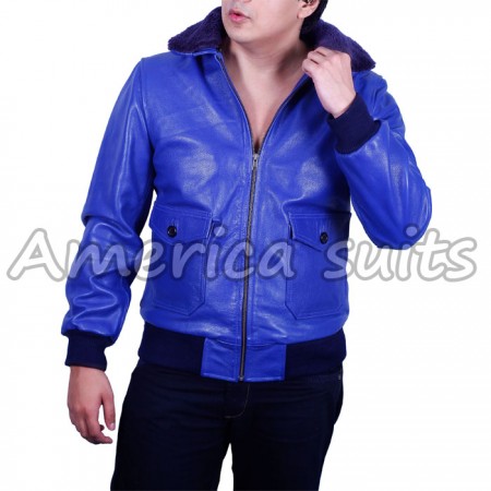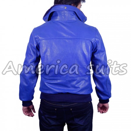 - Blue leather jacket