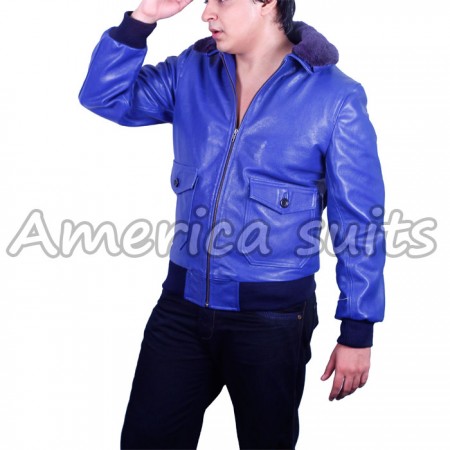 Men's Aviator style leather Jacket with removable fur collar