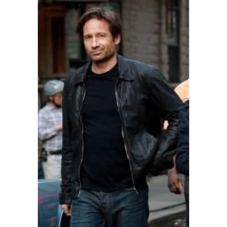 X-Flies David Duchovny American Apparel Men's Leather Jacket David William Duchovny is an American actor, writer, and director. He is best known for playing Fox Mulder on The X -Files and Hank Moody on Californication both of which have earned him Golden Globe awards.
