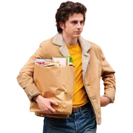You know the jacket: the tan shearling piece Timothée wears in A Complete Unknown that looks like it came out of a 60s record shop, not a costume trailer. This Timothée Chalamet A Complete Unknown Shearling Jacket keeps that feeling without the fuss. The exterior is sturdy leather that starts smooth and earns a soft patina as you rack up miles; inside, plush faux shearling takes the edge off cold mornings the second you shrug it on. The wide lapel sits up when the wind bites and down when it doesn’t, and the button front stays clean instead of bulky. Pockets land where your hands do—two outside for the quick stuff, two inside for a phone and wallet. The cut sits between fitted and easy, so this shearling leather jacket slides over a tee, Henley, or chunky knit without bunching. Black denim and Chelsea boots? Works. Washed indigo and trainers on a coffee run? Also works. If you’ve been hunting for a Complete Unknown jacket that reads like real clothes, not a replica, this one nails the mood: quiet, steady, slightly retro in the best way. It’s the Timothee Chalamet jacket people recognize, minus the red-carpet preciousness.