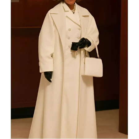 The open front closure keeps the styling flexible and easy, while the lapel collar gives a classic balance to the neck with elegant framing. The full-length sleeves cover an open area of the coat to help produce a layered look. Glossy and white, a striking and radiant tone that easily matches fashion.