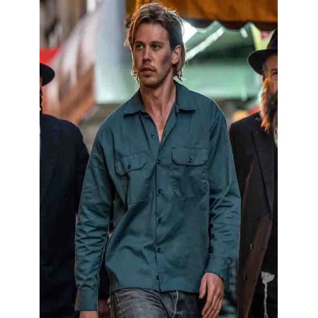Hank Thompson Caught Stealing Movie 2025 Austin Butler Blue Shirt