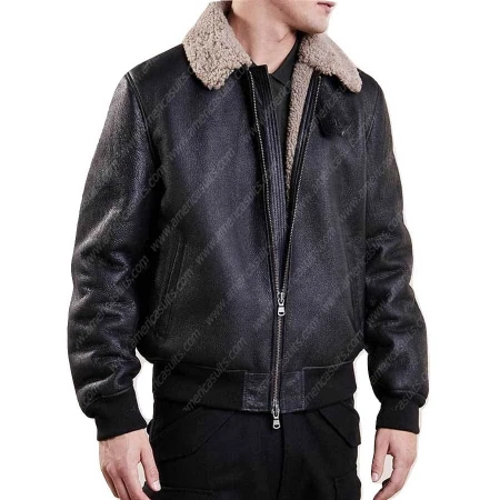 The Black Bomber Shearling Jacket men reflect the essence of a heroic and iconic look. The full-length sleeves are crafted with ribbed cuffs to style it differently from other jackets.