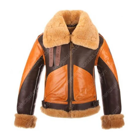 Men's Orange Aviator Style Shearling Jacket