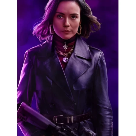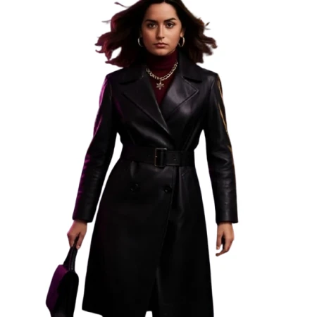 Experience the refined dressing of America Suits. Order your Catalina Sandino Moreno Leather Coat today