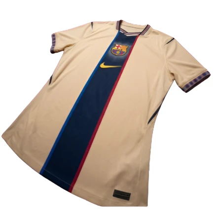 The Vertical Stripe Beige Away Jersey is an everyday outerwear that can be worn with confidence by those who are keen on refined club style. It is befitting fans who desire to sport FC Barcelona but in a classy and graceful way, whether at a home game, an informal event, or under a light jacket during colder nights. The jersey is stylish and comfortable as well as personal, which makes it appear less aggressive and more sleek and polished in the trend statements.