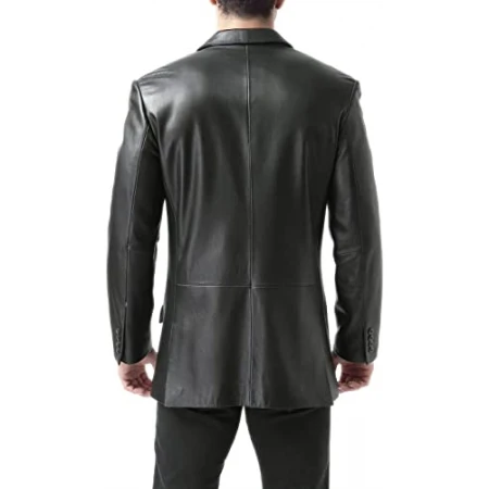 Experience the luxury of this black leather blazer, crafted from supple lambskin leather. The classic two-button closure provides a tailored silhouette, while the rich black color adds timeless appeal. This black lambskin blazer is a versatile and stylish investment piece