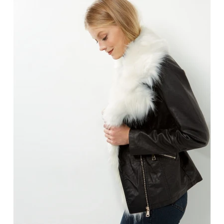 Product Description For Black Faux Fur Leather Jacket: