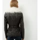 Black Faux Fur Leather Jacket For Women