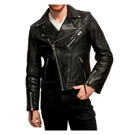 A black leather moto designer men's jacket is a sleek and edgy garment that exudes confidence and individuality. Crafted from premium leather, this jacket is designed to withstand the test of time while still offering the wearer a comfortable and stylish fit. The jacket's moto-inspired design features unique details, such as exposed zippers, snap buttons, and epaulets, that set it apart from traditional leather jackets. These distinctive elements give the coat an edge, making it a statement piece that can elevate any outfit. The black leather of the jacket gives it a timeless and versatile look, while the designer's attention to detail ensures that it is a standout piece in any collection. The jacket's tailored fit accentuates the wearer's physique while allowing for ease of movement and comfort. Whether worn with jeans and boots for a casual look or paired with dress pants and dress shoes for a more formal occasion, this black leather moto designer men's jacket is perfect for those who want to make a bold fashion statement. It is an actual investment piece that will not only enhance your wardrobe but also become a lasting part of your style at americasuits.com