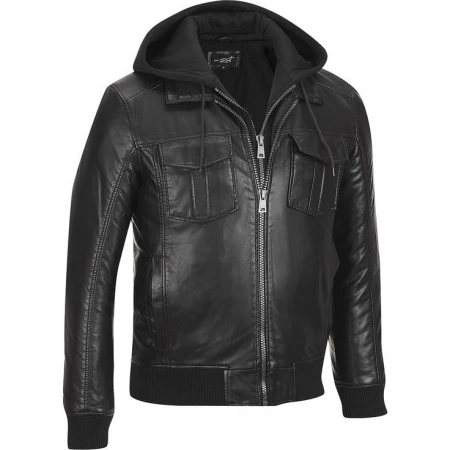 Men's Removable Hood Black Rivet Bomber Jacket