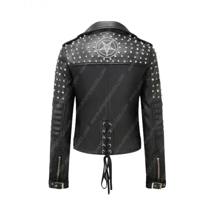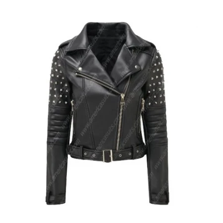 The Black Studded Motorcycle Leather Jacket is the right choice when you are looking for stylish and unique casual wear. The Black Studded Jacket is in very high demand because of its simplicity. The Motorcycle Leather Jacket is a vintage style jacket. This Black Leather Jacket has a classically quilted collar with asymmetrical zipper closure, the zip which we use is branded. It has straps on both shoulders. The Black Motorcycle Jacket has a belt adjustment on the hemline. The front of the jacket also has zippered pockets. It is manufactured by a professional designer with premium quality leather. So place your order to get this attractive jacket. See more at America Suits