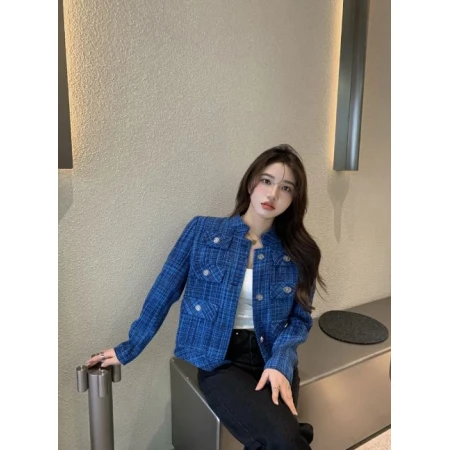 BlackPink Jennie Blue Plaid Tweed Jacket