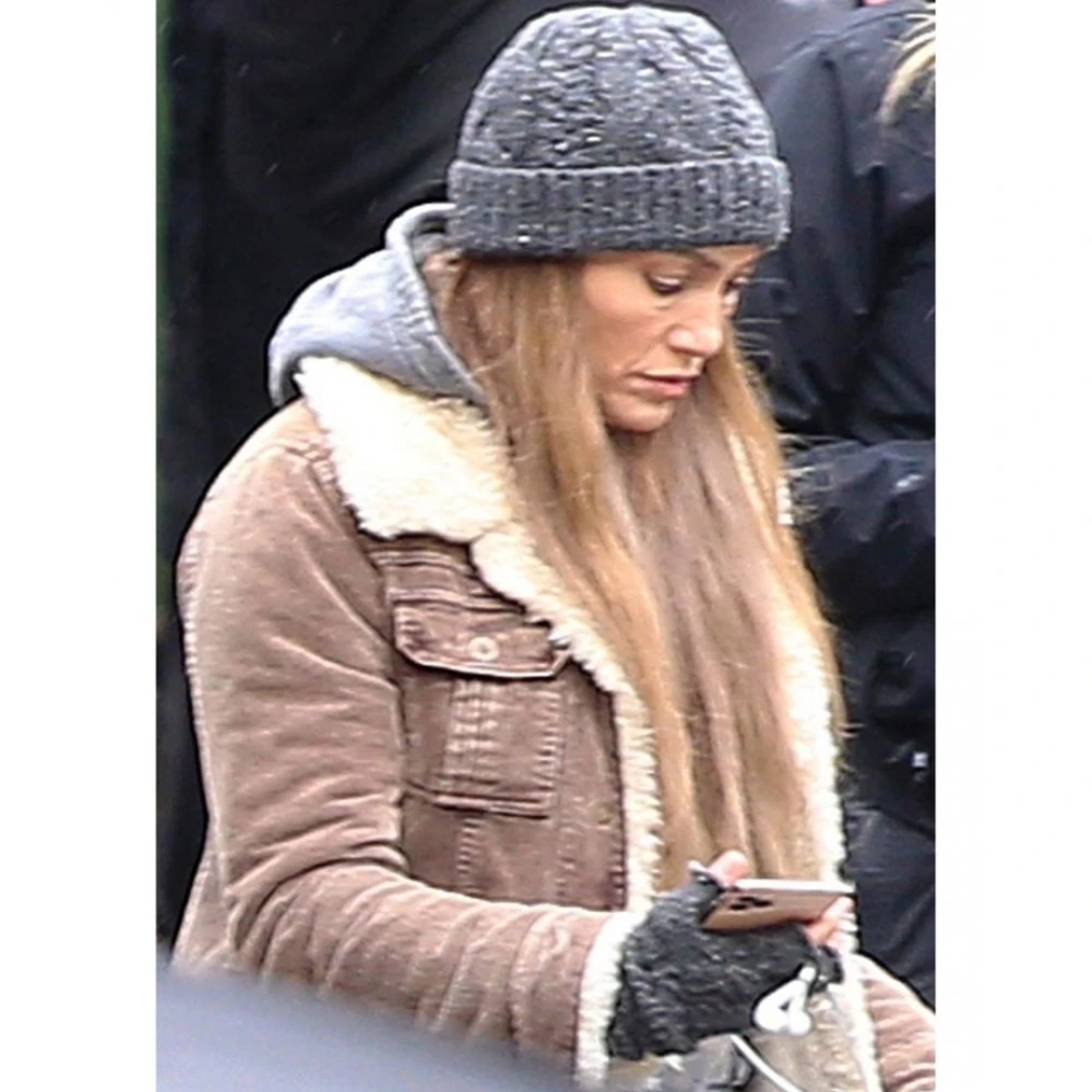 As Jennifer Lopez graces the screen, the first thing that catches our eye is her exquisite fashion sense, perfectly embodied by the brown shealing jacket she wears throughout the film. The jacket, crafted from luxurious shearling, offers a luscious texture that adds depth and sophistication to Lopez's character. The warm brown hue complements her complexion, enhancing her natural beauty and highlighting her radiant presence on screen.