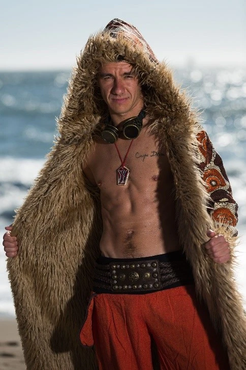 Burning Man. The fur coat represents uniqueness and creativity. Men's fur coats