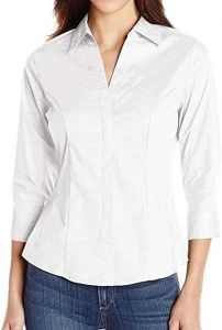 This shirt is made from 60 per cent cotton, 37% polyester, 60% cotton, and 3% spandex, making it incredibly soft, light, and breathable. It has an iconic collar that goes to a front button closure to give it a classic look. Its three-quarter sleeves finish with an open hem and offer a more comfortable fit.
