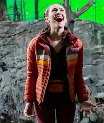 Iris Aptow is in the Bubble in the 2022 Iris Aptow orange Jacket, currently available on our site. So please don't wait; get this jacket before it runs out of stock. The stylish jacket is made of high-end polyester fabric with a soft viscose lining. It shields you from the cold wind, has a stand-up collar, and is elegantly designed with a zipper closure.