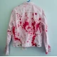 This jacket is made from denim and is lined with viscose for comfortable and breathable wear. It features a shirt-style collar, buttoned cuffs, and a buttoned front closure. The white color is perfect for a Halloween costume, and the blood splatter design adds a unique and spooky touch.
