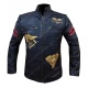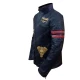We are bringing Zipper Blue Leather Jacket, especially for persons who are looking for apparel that they can wear in all seasons. The Blue Leather Jacket has an attractive patch style which makes it more attractive than other apparel. The elegant blue color will suit all types of personalities. And the sleeves of the men's leather jacket have a full length and red stripe on both biceps. The front of the men's navy blue jacket has a zipper closure and two pockets on the chest level. And when we talk about the material of the jacket so it is made up of genuine leather and perfectly stitched by our highly skilled designers. So avail this latest arrival from americasuits.com with free shipping all over the world. Check 2019 Halloween Costume Ideas from trusted jackets site.