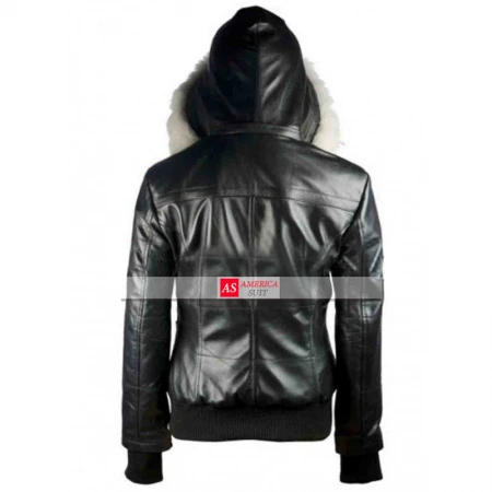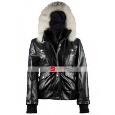 Bomber Womens Fur Black hooded jacket is made of original leather and fur brings beauty to this jacket, Keep in style and warm at the same time and buy online now. It is a perfect winter jacket with a hoodie to keep you warm and in style. Great looking attire for you. These Bomber Womens Fur Black Leather Hooded Jacket are made of high-quality soft sheepskin which is soft in nature and has a viscose lining inside. the fur will definitely keep you warm inside and the style f the jacket will keep you hot outside. For further details or to get more Black Leather Jacket visit America Suits