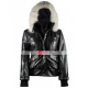 Product Description Fir Bomber Womens Fur Black Leather Hooded Jacket: