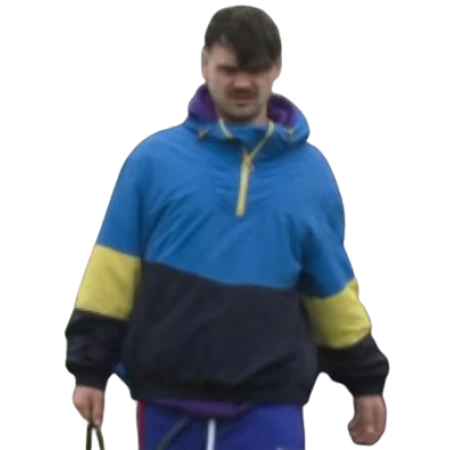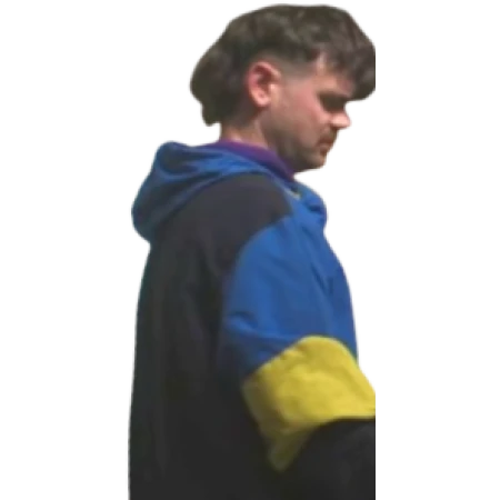 Brassic Episode 01 Blue Hooded Jacket has a zipper at the front,