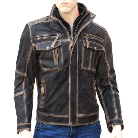 Item Description For Brown Distressed Modified Leather Jacket:
