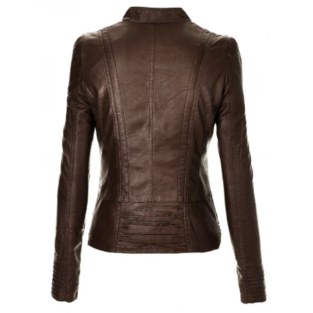 Product Description For Brown Quilted Leather Jacket For Women