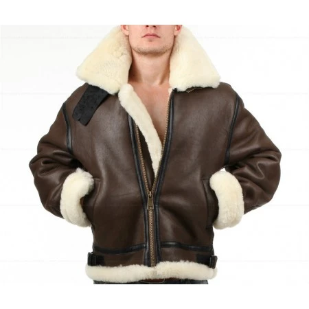 Q1: Which material is used in the production of Brown Shearling Leather Jackets?