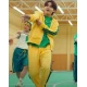 The tracksuit is manufactured from the top quality fleece material in the yellow color, making the appearance prominent for those who really want to seek everyone's attention. Sleeves are full in length and have the green color stripe along with the rib knitted cuffs ending, adjusted according to the size. V Tracksuit has a collarless neckline that's designed in a round shape along with the branded zipper fastening closing feature. There are two welted pockets on the waist and two stitched pockets on the inner side for securing the belongings.