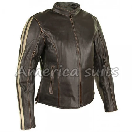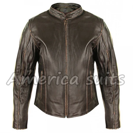 Cafe Racer Leather Jacket the most generous dress that will unquestionably change your persona into a very bewildering identity is presently accessible for you. The external shell of the chicest Brown Leather Motorcycle Jacket is arranged from the best quality cowhide. The cafe racer jacket brown shade makes your picture super engaging. The basic sign of the outfit is the beige cowhide stripes displayed on the sleeves. The mandarin neckline has given a noteworthy look to it. The Bistro Racer Leather Jacket has zipper side openings to alter the waist as indicated by your size. The hanging circle is additionally given into the neckline to your achievability. The YKK front zip shutting offers you ease in wearing. The full dash out removable knitted coating is introduced in Women's Dark Brown Leather Jacket. Two side waist-zipped stashes are included alongside one inside pocket. There are two zipper vents at the upper sleeves though two same vents are at the lower back piece of the sleeves.