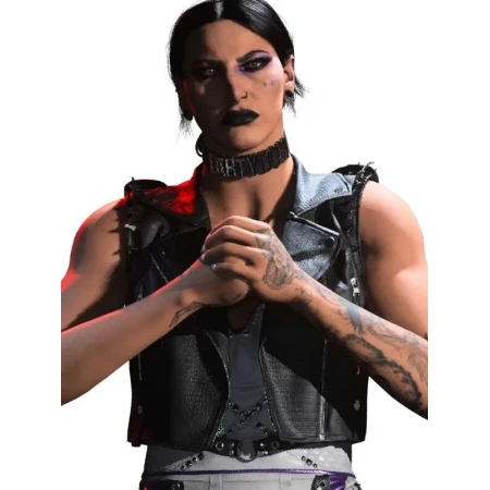 The Call Of Duty Rhea Ripley Black Leather Vest is more than just an item of clothing, it is a statement of fashion. It captures the bold look of Rhea Ripley and brings it down to everyday wear. Made from high-quality leather for durability and has a soft viscose lining to ensure comfort. It is fashionable and functional with a modern zip up feature as well as useful pockets. These can be found in AmericaSuits, where style meets quality.