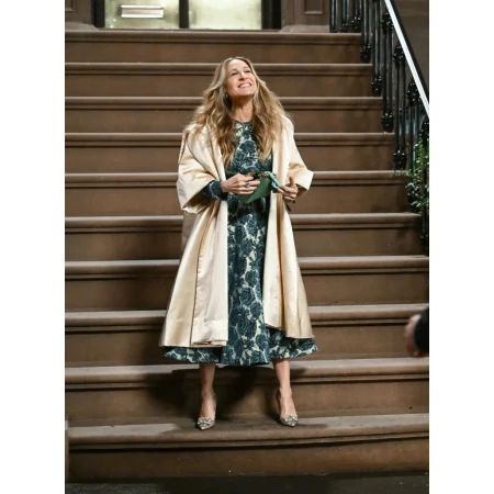 This poncho is a versatile addition to your wardrobe, allowing endless styling possibilities. Pair it with skinny jeans and ankle boots for a chic and casual look, or dress it up with tailored pants and heels for a more formal occasion. The neutral off-white color allows you to experiment with various accessories and colors, making it a versatile and timeless piece. Invest in the Sarah Jessica Parker And Just Like That S02 Poncho and embrace your inner fashionista. Channel the confidence and charm of Carrie Bradshaw as you step out in style and make a lasting impression wherever you go.