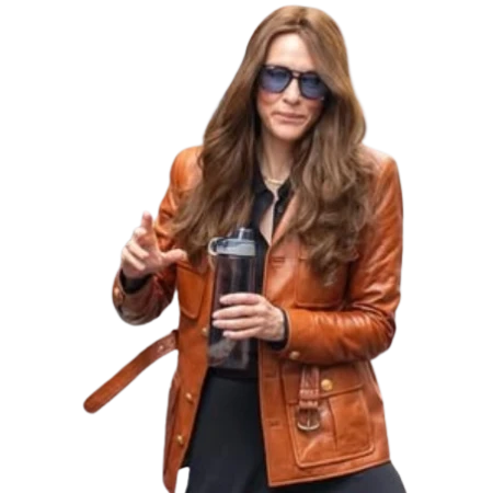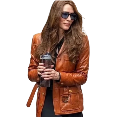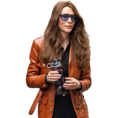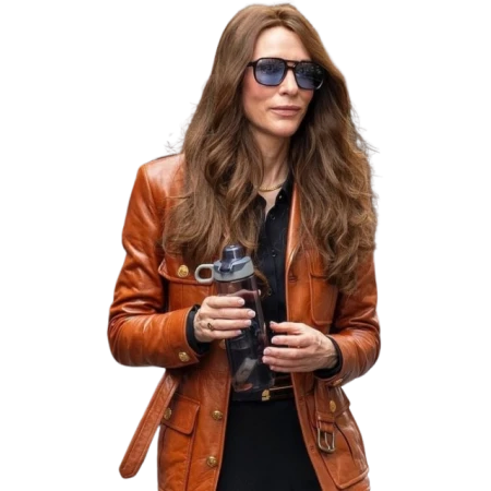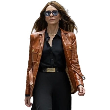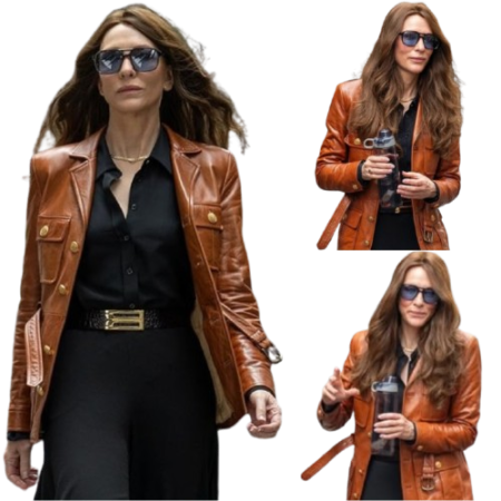 There’s something about a jacket that doesn’t ask for attention; it just owns it. The Cate Blanchett Black Bag Kathryn Brown Leather Jacket doesn’t shout. It doesn’t have to. Inspired by Cate’s raw, magnetic presence in Black Bag, this jacket brings serious energy. Cool without trying. Confident without explanation.