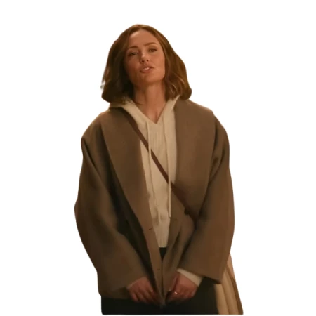 Champagne Problems 2025 Minka Kelly Coat is warm, effortless, and subtly elegant, meeting all the requirements of a busy woman. It is a perfect coat during cold weather while rushing for either work, meeting friends, or going out in the evenings. A pair of daily wardrobes goes well with it, as its soft camel brown shade adds just the right amount of calm and sophistication.