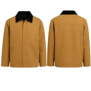 The exterior features a cotton fabric; the inside is soft and breathable, while the outside is strong. The sleeves are long to offer warmth, and the zip is secured for added benefits. The collar of the shirt maintains a neat yet relaxed look, while the camel-tan color complements most wardrobes, with two pockets on the outside and two pockets on the inside. The essentials can be stashed away without any bulk.