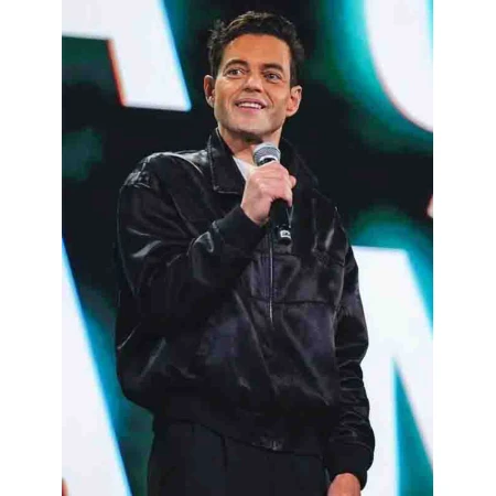 Rami Malek The Amateur Movie 2025 Charles Heller Black Bomber Jacket