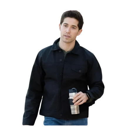The black cotton jacket has four outer pockets and two inner pockets which let users store their daily essential items like phone, wallet, and keys while keeping their tailored fit intact.