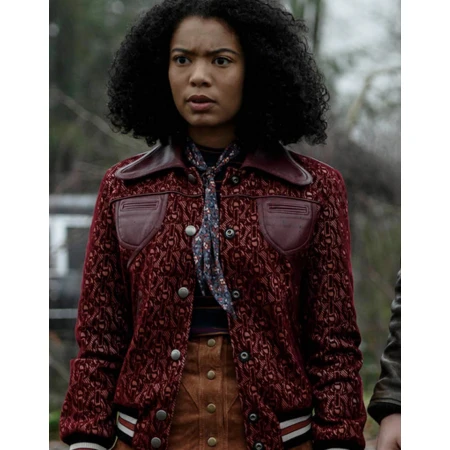 This attractive style Rosalind Walker Red Bomber Jacket is another inspirational jacket from the famous movie Chilling Adventures Of Sabrina. Jaz Sinclair wore this attire when she portrays the role of Roz Walker in this movie. She is an American television and film actress. Jaz Sinclair is best known for playing Angela in Paper Towns and Anna in When the Bough Breaks. Chilling Adventures Of Sabrina is an American horror television series. In December 2018, Netflix renewed the Chilling Adventures Series for the second season of 16 episodes, which will also be split into two parts. Rosalind Walker Jacket is made from cotton material. The jacket is in red color and has a chain pattern on the external. Inner has a soft viscose lining. It has a bird beak shirt collar made in brown leather material. This Red Bomber Jacket has a snap button fastening front closure. It has full sleeves with rib-knitted cuffs. It also has a rib-knitted waistline. Mini chest welted leather made pockets and side zipper pockets are also a part of this attire. Place your order at americasuits.com.
