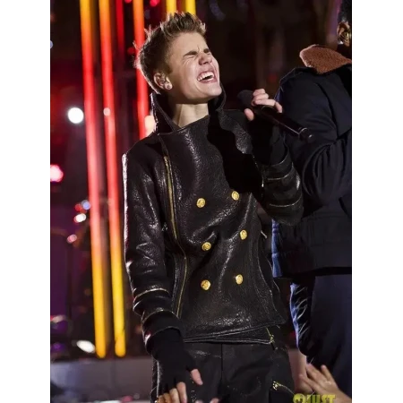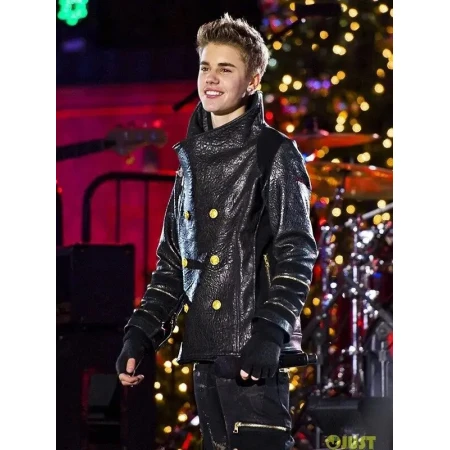 Justin Bieber Christmas Concert Double-Breasted Black Leather Jacket