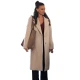 The coat is made of the finest wool fabric that provides natural insulation, structured with drape so that it can beautifully hold its silhouette. The viscose lining on the inside makes it comfortable for layering and day-long wear. This versatile beige coat can be matched with light and dark winter palettes. The signature lapel collar surrounds the silhouette; the buttoned closed front ensures a clean, tailored finish. Full-length sleeves allow for full coverage and balance, making the coat useful on the more frigid days.