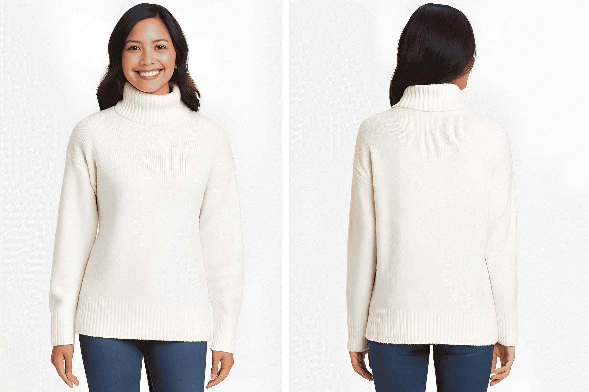 - Style: Ribbed turtleneck pullover