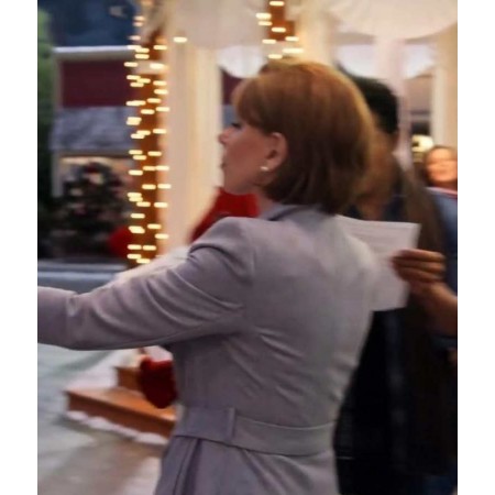Christmas On The Square Regina Coat, you are seeing here, inspired by the same character of Regina. The light grey shade of it, considered as one of the authentic colors to wear among all the outfits of your entire wardrobe collection. It's a combo of two types of materials including cotton used for the exterior and a viscose lining, present on the interior side for your ease. A wide lapel style collar of Regina Coat reaches down to the level of a belt fastening closure that will be easily adjusted as per according to the size of the body. For the complete picture look, open hem cuffs and long fitted sleeves are also a part of this coat. You might also like Christmas In The Rockies White Coat.