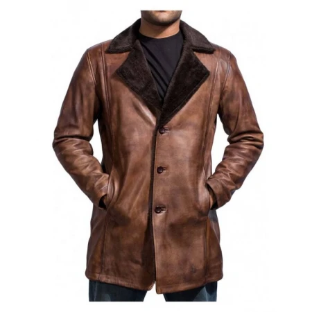 Cinnamon Color Men's Fur Trench Leather Coat