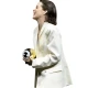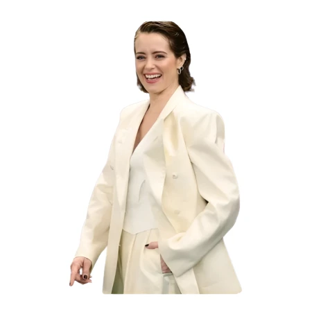 The Claire Foy Suiting Blazer is created as a dressing that fits a woman who appreciates quiet confidence and subtle style, and fits perfectly well in daily life. This suiting blazer, which is off-white in color, has a structured style, but it is not that rigid. It supports individuality by promoting clean fitting and classic grace as opposed to the fleeting fashions.
