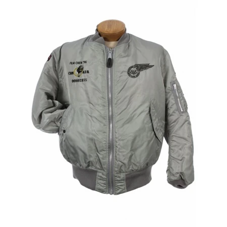 Channel Nicholas Cage's iconic Con Air look with this men's satin bomber jacket. Crafted from luxurious satin, it features a bold orange base for a head-turning statement. Multiple embroidered patches add a touch of rebellion, replicating the movie's convict uniforms. The ribbed collar, cuffs, and hem provide a comfortable fit, while the front zip closure and side pockets offer practicality. This officially licensed jacket is a must-have for any Con Air or Nicholas Cage fan