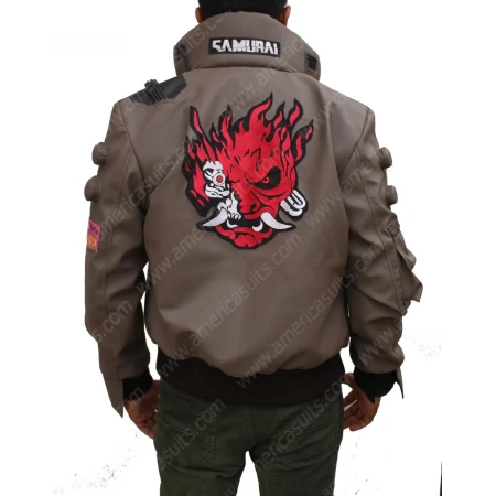 Embrace the thrill of Night City with the Cyberpunk 2077 Samurai Bomber Jacket! Inspired by the legendary video game, this jacket is a must-have for any fan. Crafted from premium brown genuine leather or high-quality faux leather, it embodies the edgy style of your favorite Night City mercenary.