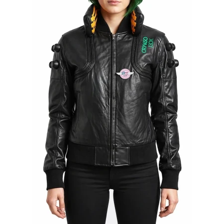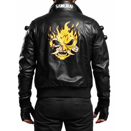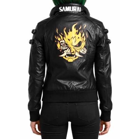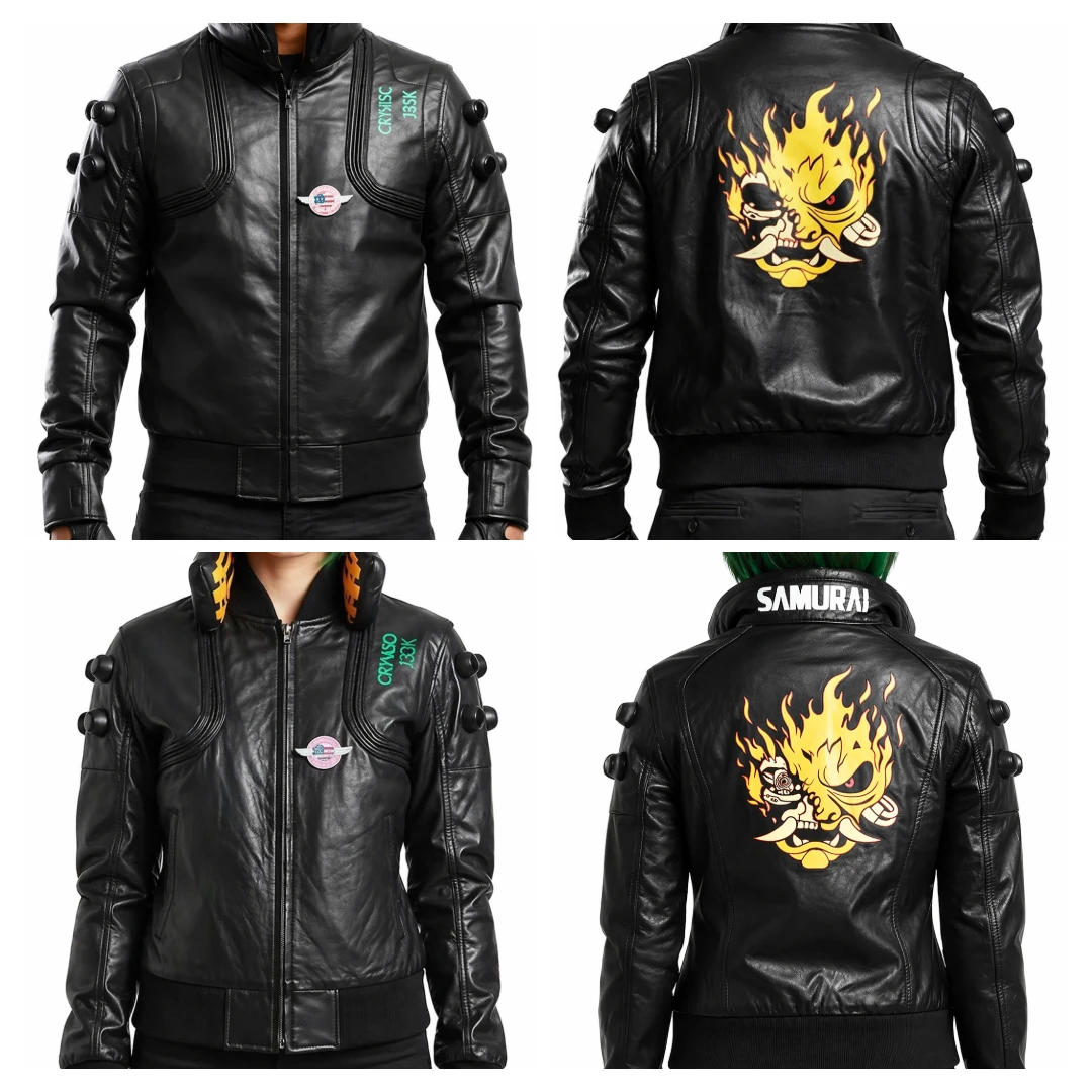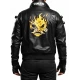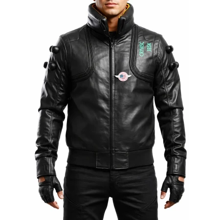 Unisex Cyberpunk Night City Samurai Black Bomber Leather Jacket