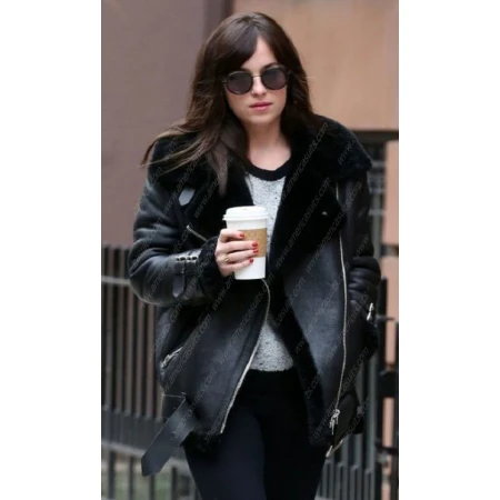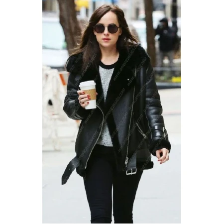 Item Description For Dakota Johnson Shearling Leather Jacket: